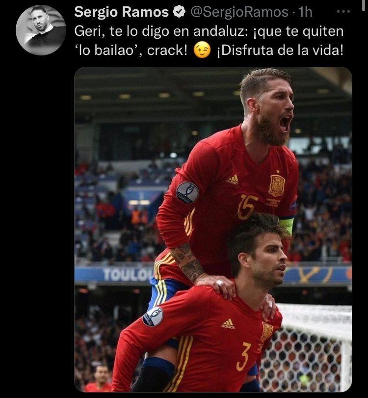 Sergio Ramos uploaded a beautiful image of both of them whilst playing with Spanish National Team, with a particular message: 'Geri, I'm telling you in Andalusian: take away 'what you danced', crack! Enjoy life!'.