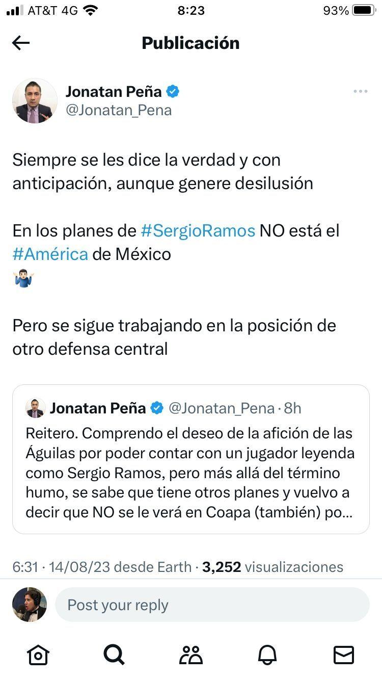 Journalists Fernando Esquivel and Jonatan Peña reported that Sergio Ramos did not accept Club América's offer. The player is not interested in participating in the Mexican league and prefers to play in another country.