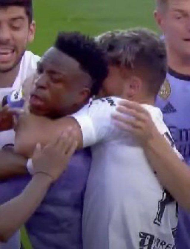 Vinicius made a controversial gesture to the rival fans, where he made a sign that they were going to be relegated to the second division. The coach Carlo Ancelotti calmed down the Brazilian and seconds later the players from the white club and from Valencia pushed each other, Vini even attacked a rival player.