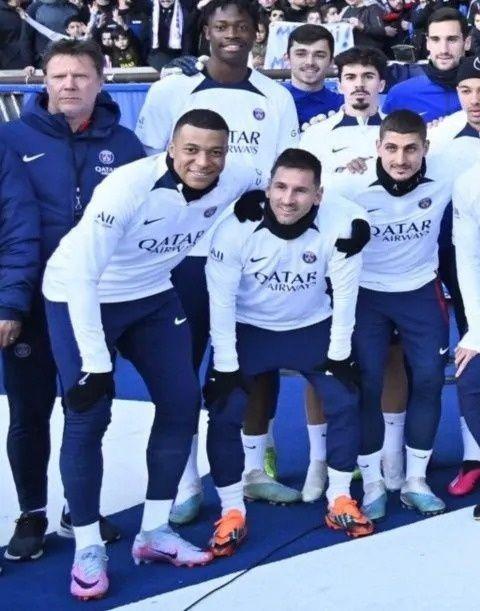 PSG decided to open the doors of the Parc des Princes to the fans, so that they can observe the training session prior to the match against Olympique de Marseille. The players decided to take a photo with the fans in the background. Mbappé once again was close to Lionel Messi and posed happily with the world champion.
