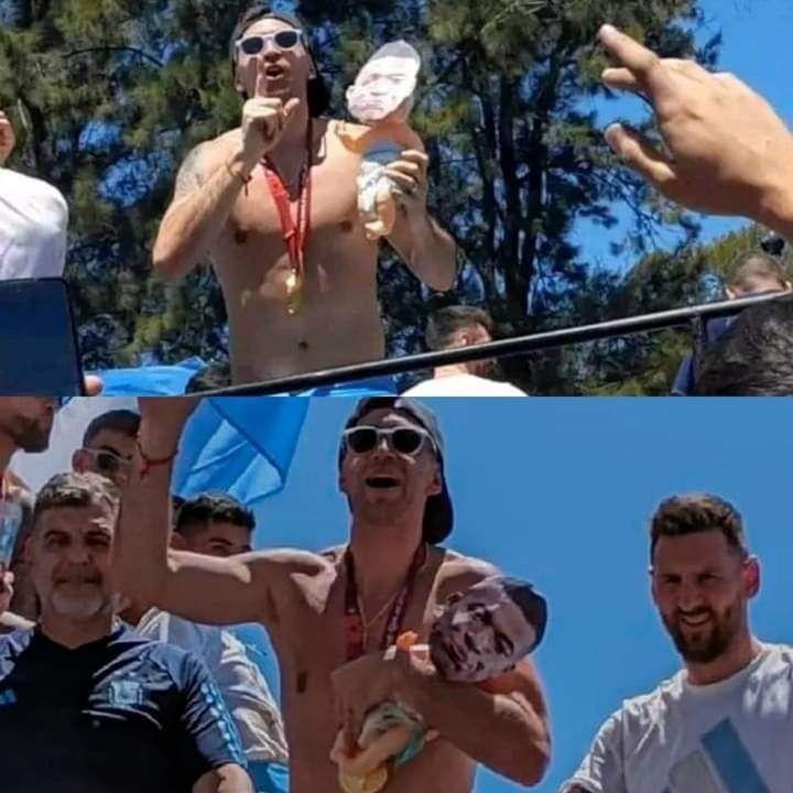 One of the images that have become most viral is that of the fashionable goalkeeper, Dibu Martinez, who prepared a mockery for Kylian Mbappe. The goalkeeper carried a baby doll with the face of Kylian Mbappe stuck to his face, implying that he is the son of Argentina.