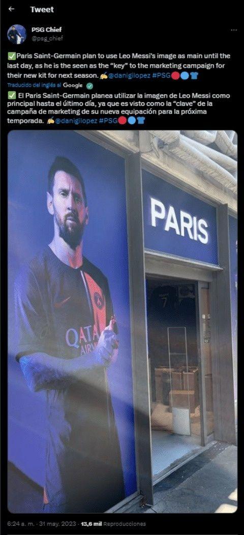 The last one has to do with his image. According to information from Dani Gil, PSG plans to use the image of Lionel Messi as the main image until the last day, since it is seen as the key to the marketing campaign due to its exposure and hierarchy of its new kit for next season.