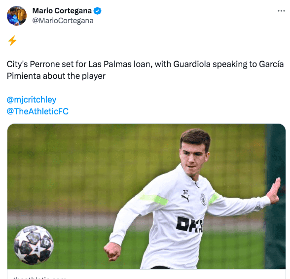 The journalist Mario Cortegana has reported that Manchester City is going to loan the soccer player Máximo Perrone to Las Palmas club. This midfielder had few opportunities to play for the club, but Guardiola continues to trust his talent.