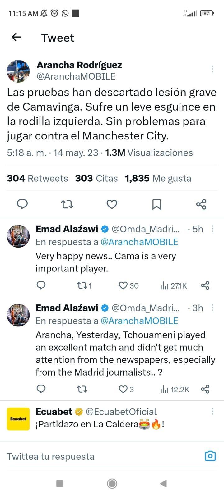 Carlo Ancelotti said that the Frenchman only received a blow to the knee and that he decided to take him out of the game as a precaution. Now medical studies have been carried out on Camavinga and the player has a small sprain and he will have no problems playing against Manchester City.