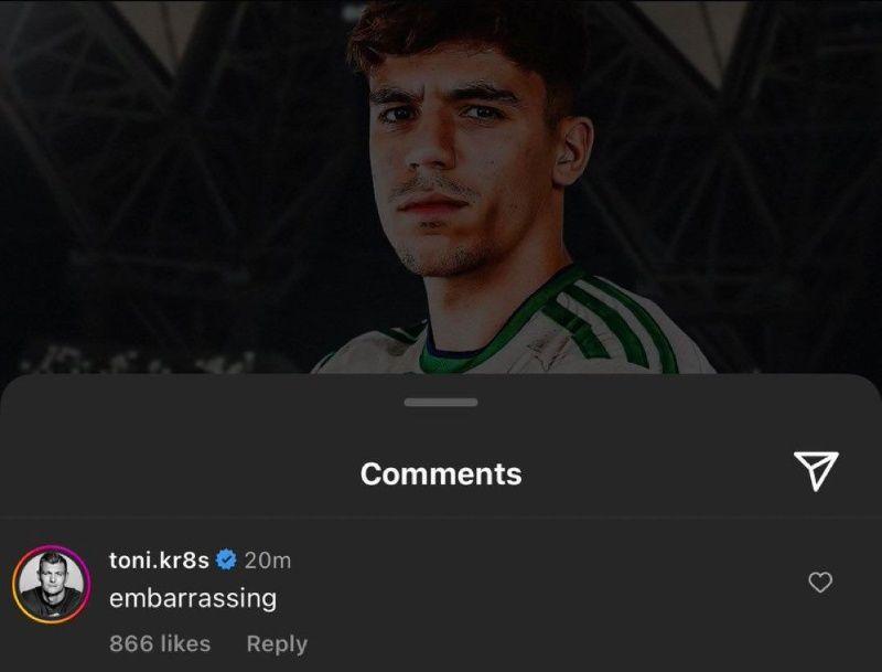Toni Kross criticized Gabri Veiga's decision to play for Al-Ahli in the Saudi Arabian League, calling him "embarassing". This message was published on the Instagram of the journalist Fabrizio Romano. Person who reported this news.