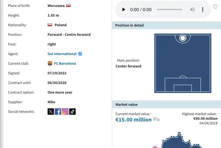 In his best time at Bayern Munchen, the Polish Robert Lewandowski cost more than 90 million dollars, according to the Transfermarkt portal. However, today, even though he is a scorer for FC Barcelona, he is worth $15 million dollars. The drop in his price largely responds to his age, he is no longer the same young man from the German team, but his quality remains intact.