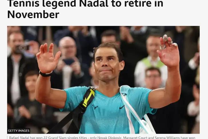 Tennis legend Rafael Nadal has announced his retirement, bringing an end to one of the most illustrious careers in the sport's history. The news was first reported by the BBC, which has dedicated significant coverage to the Spaniard's achievements.