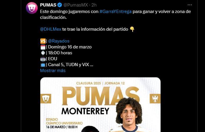 The Pumas UNAM vs CF Monterrey match can be watched on TUDN on Sunday, March 16, at 8:00 PM ET / 5:00 PM PT. From the Estadio Olimpico Universitario, Pumas UNAM, led by Efrain Juarez, will aim to capitalize on their home advantage to climb up the Liga MX Clausura standings. Meanwhile, Monterrey, under Martin Demichelis, seeks to strengthen their position in the tournament and continue their push for the top spots. Discover how both teams arrive, their recent results, and the possible lineups for this crucial clash.