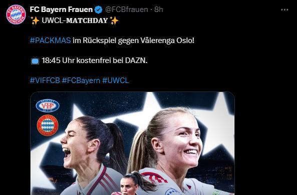 The Vålerenga Women vs Bayern Munich Women match will be available on DAZN starting at 12:45 ET / 9:45 PT. The Norwegian team will host the German side at the Intility Arena in a game corresponding to the Women's Champions League group stage. Find all the match details: how the teams arrive, their possible lineups, and predictions.