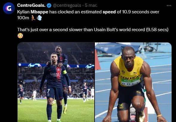 Mbappé's impressive speeds have drawn comparisons with Usain Bolt, the fastest man in the world. While Bolt holds the world record for the 100 meters with a time of 9.58 seconds, Mbappé has shown he is surprisingly close in terms of peak speed. According to statistics shared by BBC Sports, Mbappé can cover 100 meters in approximately 10.9 seconds, just one second shy of Bolt’s record. While this comparison is impressive, it’s important to consider that Bolt is a professional sprinter, whereas Mbappé applies his speed within the context of football, where factors such as ball control and stamina play critical roles.