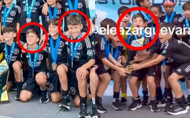 Thiago Messi (son of Lionel Messi) and Benjamín Suárez (son of Luis Suarez) won their first trophy today at the Inter Miami Academy, and they had luxury spectators. Lionel Messi and Luis Suarez were present on the field watching their children shine with the Inter Miami children's team.