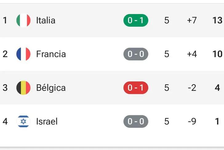 If the match ends with an Italy victory, the group will be as follows