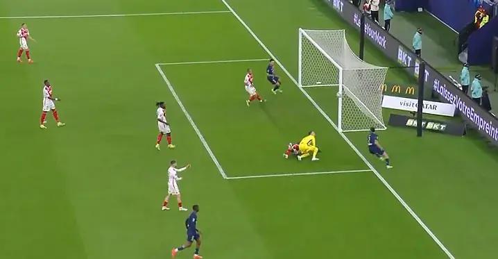 Barcola tries from the left side inside the area, but Vanderson reads his intentions very well.