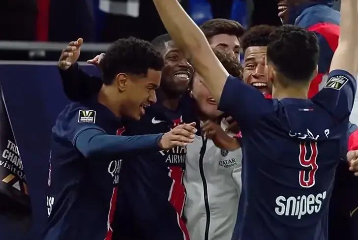 AMAZING FINISH! Barcola combines with Mayulu , plays a brutal pass to Fabián on the left, gives the perfect pass to the second ball and Dembélé arrives to score at ease and unleash madness in Doha . PSG ARE ONE STEP AWAY FROM THE TITLE!
