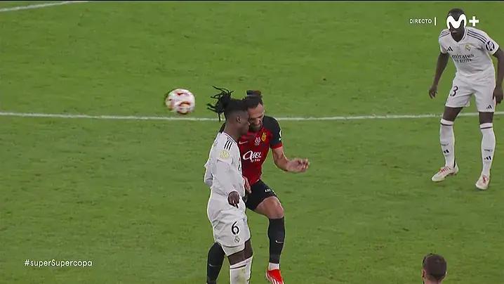 HE GETS IN TOUCH WITH MAFFEO AND VINICIUS! The Mallorca player kicks him off the ball, goes to look for him with his shoulder to hit him again and Vinicius touches him with the back of his hand on the chest. Maffeo dives after he goes to look for Vinicius.