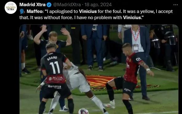 One of the most controversial moments occurred in August 2024, when Maffeo stepped on Vinicius’s right calf during a match at Son Moix. Although the referee issued a yellow card, many argued it warranted a red. Maffeo defended his actions, claiming he was attempting to play the ball and that the contact was accidental.