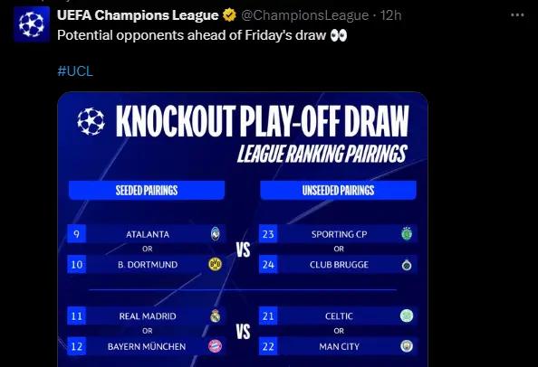 The play-offs could feature marquee matchups, notably Real Madrid potentially facing Manchester City. Real Madrid's manager, Carlo Ancelotti, has expressed concerns about the prospect of facing such a formidable opponent at this stage.