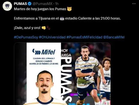 Fans can watch the Club Tijuana vs. Pumas UNAM match live on ViX Gratis and TUDN this Tuesday, February 25, starting at 10:10 PM ET (7:10 PM PT).