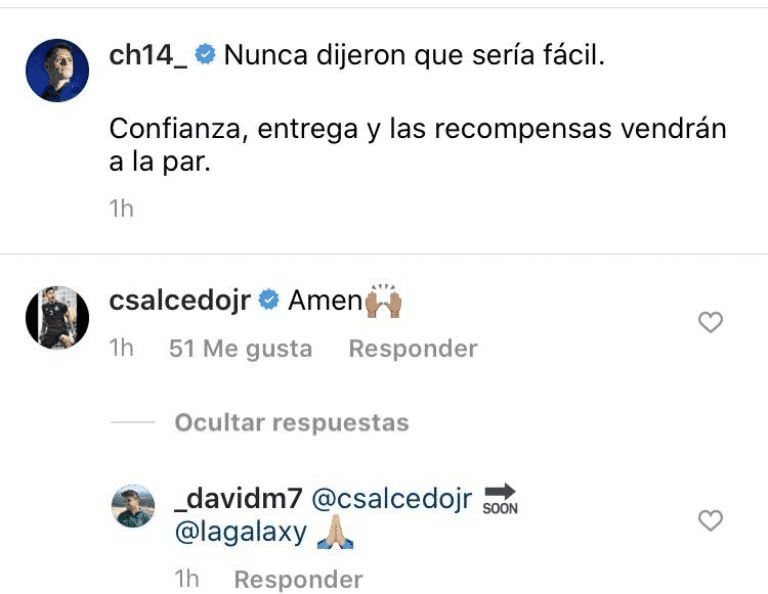 In the message, Chicharito Hernandez stated that nothing will be easy but that trust and dedication will make things go the best way. Carlos Salcedo automatically responded with an "amen." Seeing that message from the Mexican national team player, many users began to ask for Salcedo for LA Galaxy.
