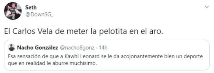 Controversy had been instaled lately about last season's MVP Carlos Vela. The Mexican will be out of the league until October due to a left knee injury. Moreover, soccer fans, specially at his home nation, continuously send rejection mesagges about his private life. A few time ago, he admited he didn't like soccer and he prefered basketball. Yesterday, in Los Angeles Clippers match Kawhi Leonard had a great match at the NBA's playoffs. However, his unescumbured personality about game inmediately was asocciated with Vela's behaviour.