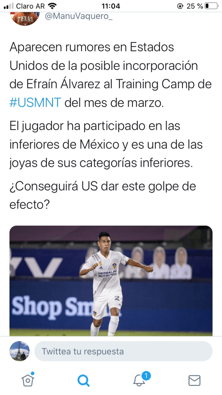 Although the possible decision of Efrain Alvarez is surprising, he would not be the first to play for Mexico in the youth divisions and then change for USMNT. Gerardo Martino has not yet summoned him to the Mexico senior team and that is why Berhalter would make a great move by summoning him to the next USMNT Camp that will take place in December.