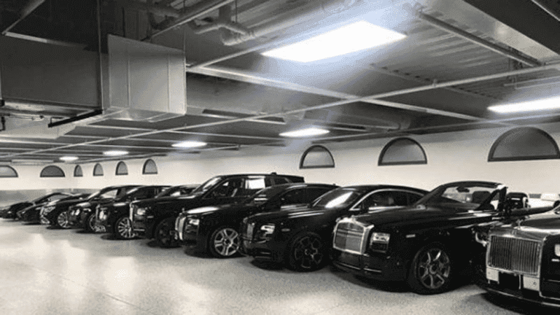 Floyd Mayweather has shown 'part' of his garage to the delight of his fans and motoring enthusiasts. A Rolls-Royce Cullinan, Rolls-Royce Phantom, Bentley Flying Spur, Rolls-Royce Drophead, Rolls-Royce Wraith, Rolls-Royce Dawn, Bentley Continental GT Mulliner, Lamborghini Aventador, Ferrari 458 GTB, Ferrari California, Ferrari FF and Ferrari 599 GTB Fiorano; all in black.