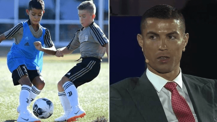 Although by his gestures and way of not celebrating it seems that he is not happy, the truth is that Cristiano Jr. is the benchmark of his team. Cristiano Jr. contributed seven goals in the 26-0 win over Maritimo China and five in the victory over Camacha 15-1.