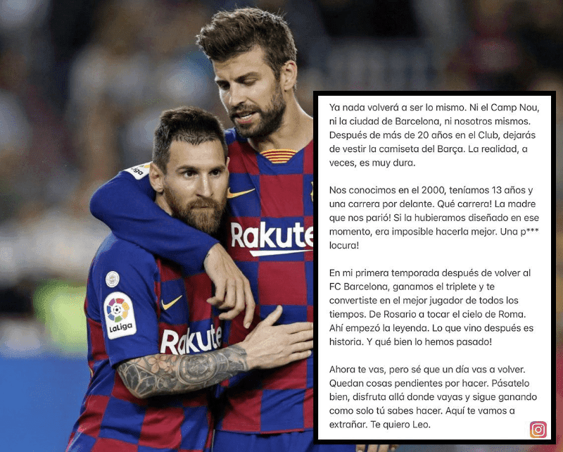 We lived together for 14 years, we went through many, many moments (some magical and others very fucked up) but we always stayed together," began the Brain in his Instagram account. He then added: "Imagining the club without you or the possibility of seeing you at Camp Nou with another shirt becomes very difficult."