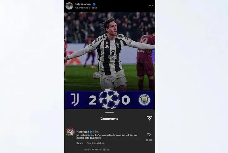 Everton striker Richarlison has ignited a social media storm after posting a cryptic and highly charged message aimed at Manchester City on Instagram. The Brazilian forward’s post, which read, "The curse of the Lord falls on the house of the thief. The shit is coming down!!!" has sent shockwaves through the football world and sparked intense speculation about its meaning.F