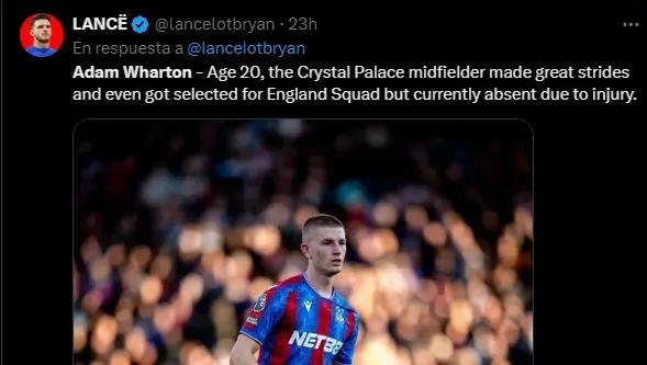 Nicknamed the ‘Pirlo of Wilpshire’, 19-year-old Adam Wharton joined Crystal Palace from Blackburn Rovers. Known for his passing precision and vision, Wharton has already made appearances in the Premier League and is shaping up to be a key figure in the Eagles’ midfield.