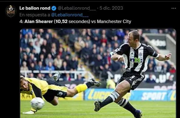 Premier League legend Alan Shearer added to his illustrious career by netting a goal for Newcastle United against Manchester City just 10.52 seconds into the game on January 18, 2003. Shearer's goal remains one of the quickest in the league's history, reflecting his renowned goal-scoring prowess.