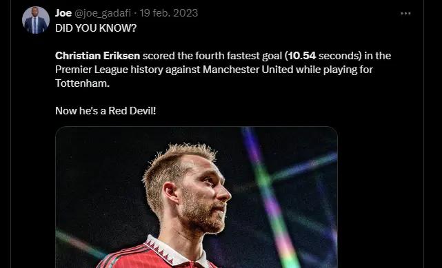 Christian Eriksen wasted no time in putting Tottenham Hotspur ahead against Manchester United on January 31, 2018. Scoring just 10.54 seconds after kickoff, Eriksen's goal is among the fastest in Premier League history, demonstrating his quick thinking and technical skill.