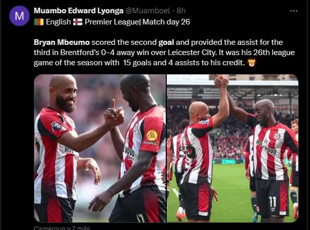 Brentford delivered a commanding 4-0 victory over Leicester City, with Bryan Mbeumo playing a central role by scoring twice. His first goal was a result of a well-coordinated team play, where he found himself unmarked in the box and headed the ball into the net. The second was a solo effort, as Mbeumo dribbled past two defenders and unleashed a powerful shot from outside the area, leaving the goalkeeper rooted to the spot. These goals not only extended Brentford's lead but also underscored Mbeumo's attacking capabilities.