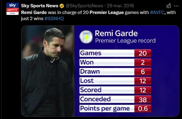 Garde inherited a squad lacking in quality and cohesion, making the task of securing Premier League survival daunting. Efforts to strengthen the team in the January transfer window were met with resistance from the club's board, leading to frustration. The team's form failed to improve, and Garde managed only two wins in 20 league games. With relegation looming, Garde parted ways with Aston Villa by mutual consent in March 2016. Reflecting on his stint, Garde expressed regret over the missed opportunity to make a meaningful impact, citing structural issues within the club and a lack of support as significant hindrances.