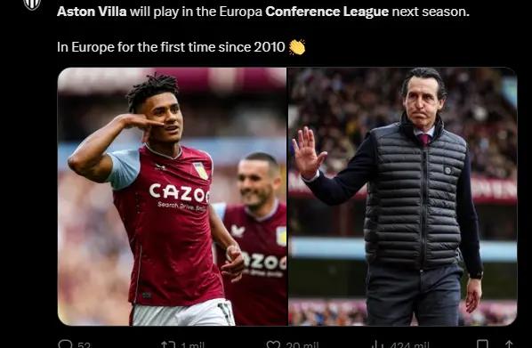 Aston Villa qualified for the 2023–24 UECL after finishing seventh in the 2022–23 Premier League season, marking their return to European competition for the first time since 2010.