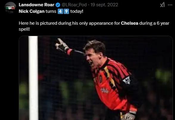 Goalkeeper Nick Colgan signed with Chelsea in 1992. Serving primarily as a backup, he was loaned out multiple times and made only one first-team appearance in a Premier League match against West Ham United in March 1997. Despite being on the bench for significant fixtures, including an FA Cup semi-final, Colgan's opportunities at Chelsea were limited.