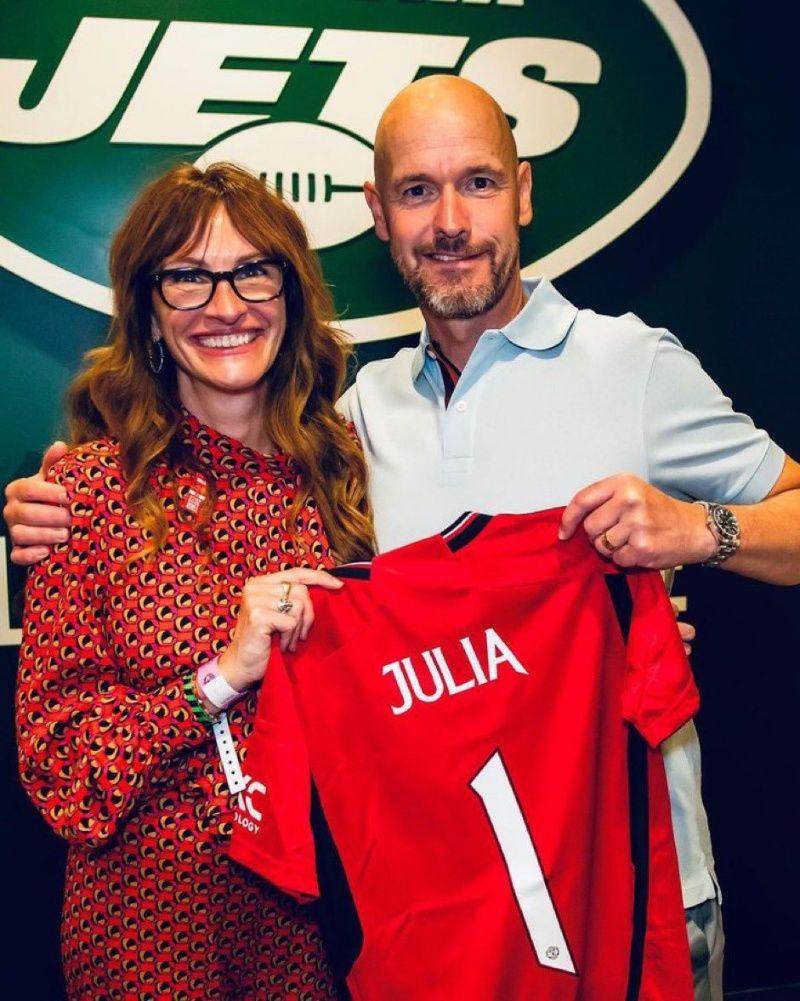 The Manchester United coach, as well as the squad, had the pleasure of receiving Julia Roberts in the pre-season they held in the United States. The actress was photographed with everyone and left an image for posterity where Ten Hag gave the actress a shirt, who already poses in the outfit and is published on the club's social networks.