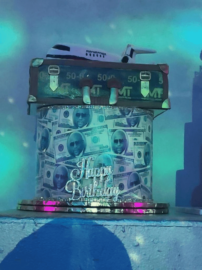 Now was Floyd Mayweather's turn, who in few days is turning 44 years old but he has already celebrate his birthday in Florida... The legend athlete did it in a mansion with almost 3000 squeare meters (smaller than Neymar's) and his cake featured dollar bills with his face printed on them, a replica of his private jet and a Louis Vuitton-inspired trunk made of frosting.