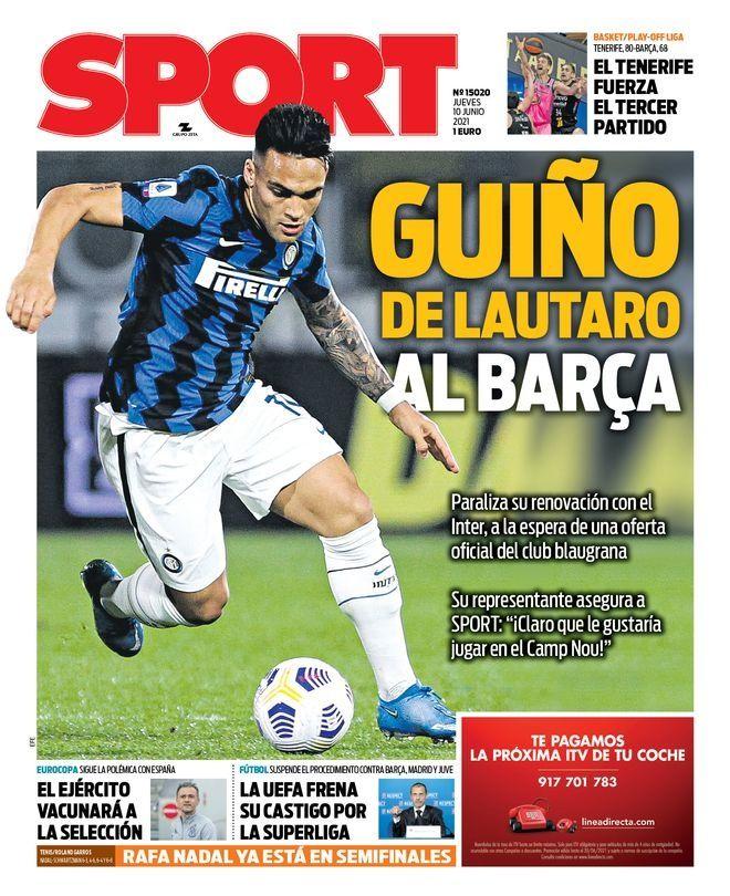 "Lautaro's wink to Barcelona" is the cover title that, together with an image of the former Racing Club wearing the blue and black Inter shirt, published this Thursday in its paper edition by the Barcelona newspaper Sport.