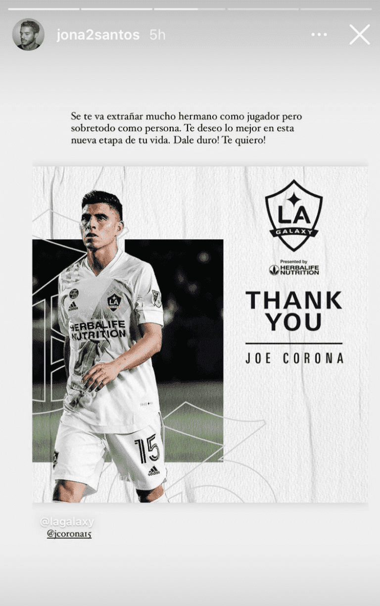 This would not have gone down well with the LA Galaxy captain and Jonathan Dos Santos made it known on Instagram. In that network, the current player of the Mexican national team published a farewell message to Joe Corona where he said that he was going to miss him a lot for the player he was but also for the quality of person.