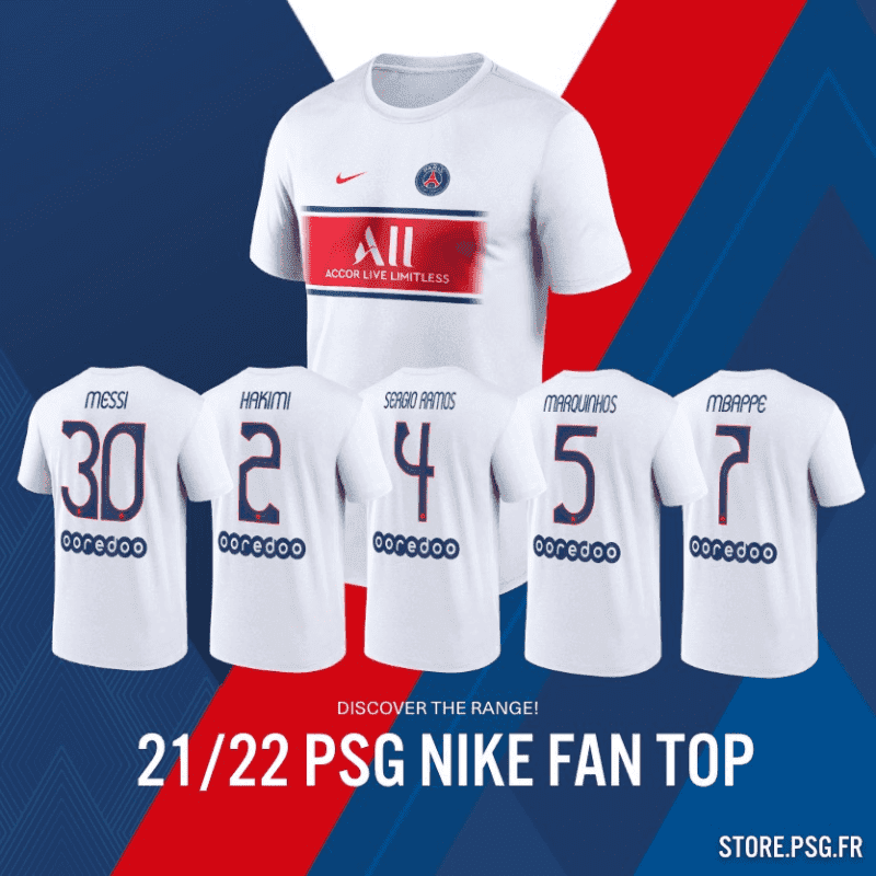 The jersey bears a vague similarity to the third game jersey of the 2012-13 season, a white jersey with a thick horizontal red stripe across the chest. Of course, the club wants to highlight that it has Lionel Messi and is the main promoted name, even above Mbappé or Neymar.