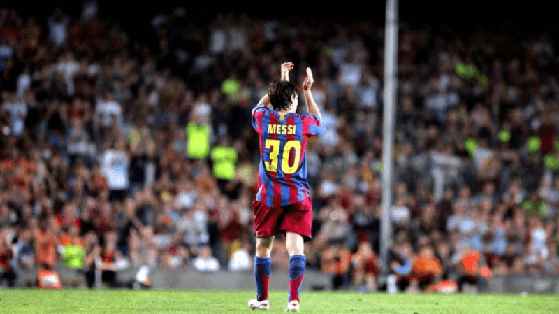 With the 30 on his back, Leo played his first two full seasons at Barça, 2004-2005 and 2005-2006. It was with that number that he scored the remembered goal over the body of the Albacete goalkeeper after the assistance of Ronaldinho, his first in the first team, on May 1, 2005 for the Spanish league at home. He played 34 games with the 30, scored nine goals and celebrated four championships: they were two La Liga titles, the 2005 Spanish Super Cup and the 2005-2006 Champions League, in which he was part of the payroll but did not play.